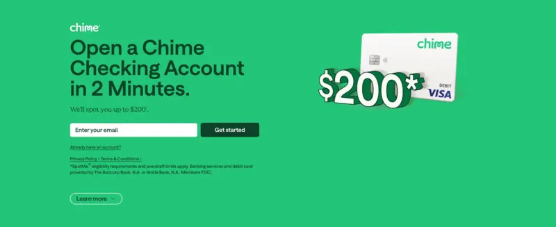 Chime® is a financial technology company, not a bank. Banking services provided by The Bancorp Bank, N.A. or Stride Bank, N.A., Members FDIC.