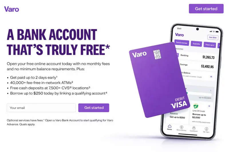 Varo Bank Account is a fully digital checking and savings solution with no minimum opening deposit and a quick mobile sign-up process. As an FDIC-insured national bank, Varo holds deposits directly and provides standard protection up to applicable limits, all within a mobile-first experience.